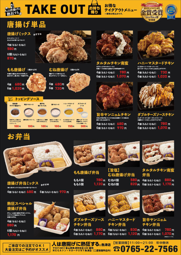 | 住所 | 〒937-0851 富山県魚津市住吉600 MEGAドン・キホーテUNY魚津店内 |