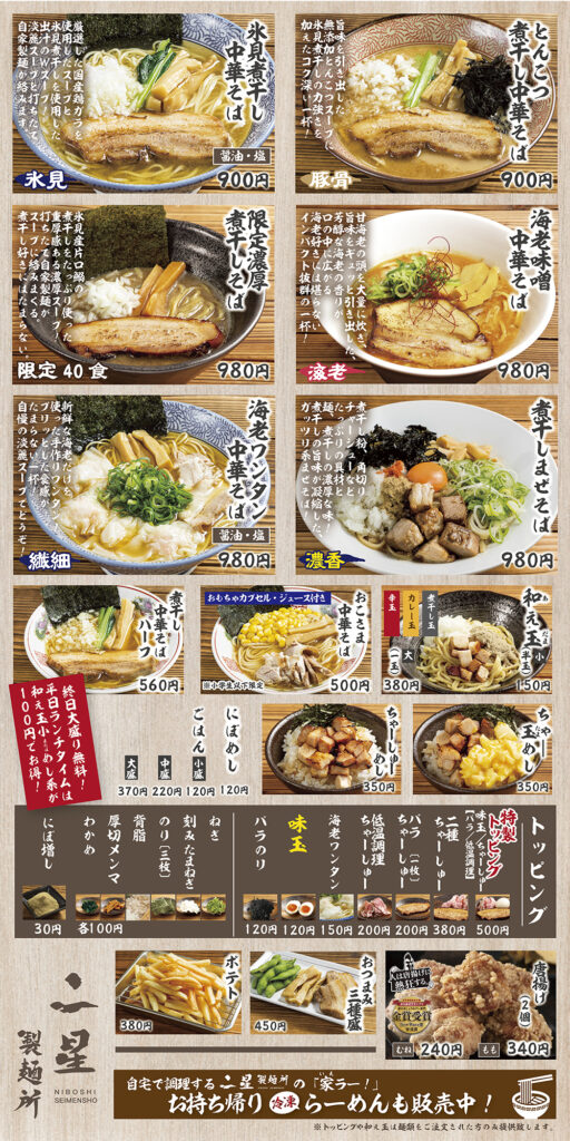麺家 なると 黒部店 麺家 なると 掛尾店 二星製麺所 みやび乃寿司 C3 Kitchen 製麺・加工所 |